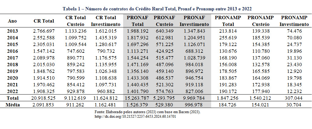 FOSSÁ, J. L.; MATTE, A.; MATTEI, L. F. A trajetória do Pronaf: análise das operações de crédito nos municípios brasileiros entre 2013 e 2020. Extensão Rural, Santa Maria, v. 29, n. 1, p. 1-27, jan./mar. 2022. DOI: https://doi.org/10.5902/2318179668371